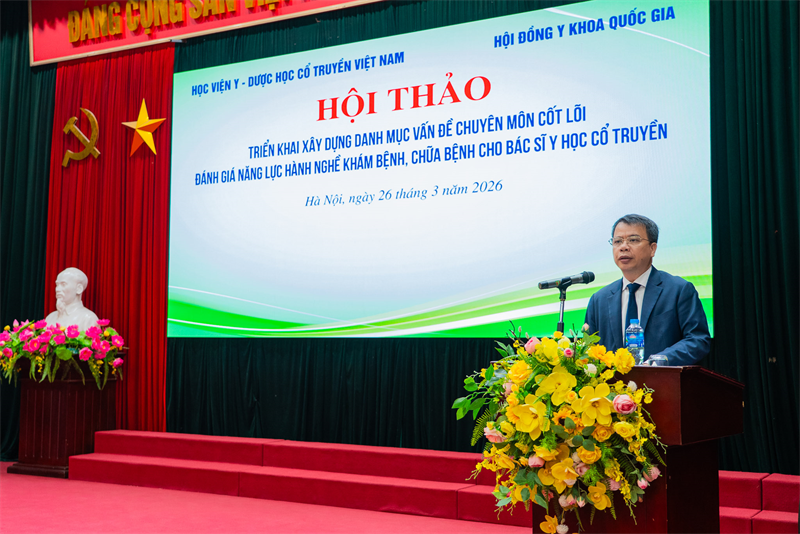 Ngày 26/3, Hội đồng Y khoa Quốc gia phối hợp với Học viện Y - Dược học cổ truyền Việt Nam tổ chức Hội thảo "Triển khai xây dựng danh mục vấn đề chuyên môn cốt lõi đánh giá năng lực hành nghê khám bệnh, chữa bệnh cho bác sĩ y học cổ truyền". Hội thảo nhằm thảo luận, thống nhất hướng tiếp cận trong xây dựng bộ công cụ đánh giá năng lực hành nghề cho lĩnh vực Y học cổ truyền.