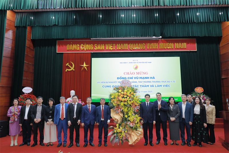 Sáng nay ngày 19/11/2025, Học viện Y - Dược học cổ truyền Việt Nam vinh dự đón Thứ trưởng Bộ Y tế Vũ Mạnh Hà cùng đoàn công tác Bộ Y tế đến chúc mừng và làm việc. Chuyến thăm này không chỉ mang ý nghĩa động viên, mà còn khẳng định sự quan tâm sâu sắc của Lãnh đạo Bộ Y tế đối với sự phát triển của Học viện trong giai đoạn mới.