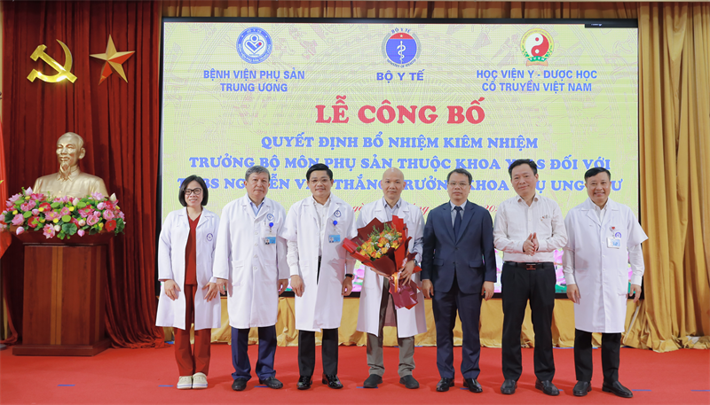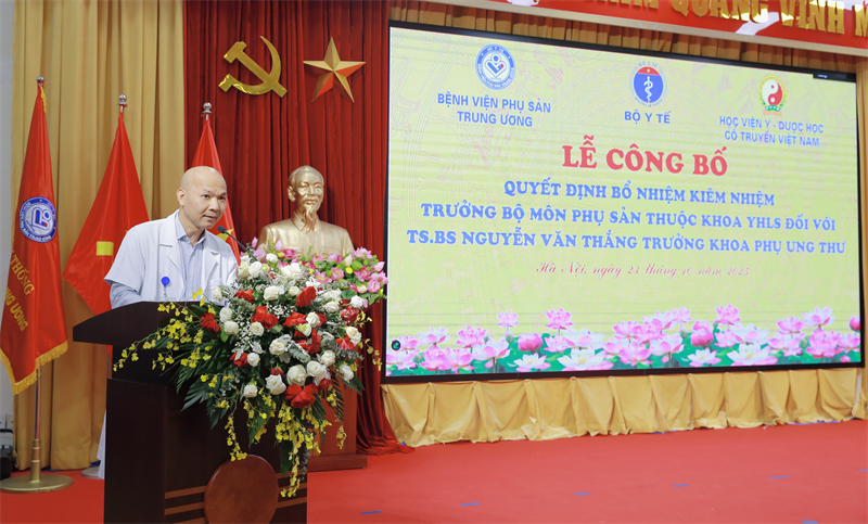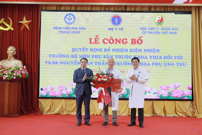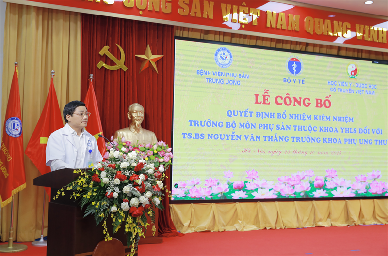 Sáng ngày 23/10/2025, tại Bệnh viện Phụ Sản Trung ương đã long trọng tổ chức lễ công bố Quyết định bổ nhiệm kiêm nhiệm Trưởng bộ môn Phụ sản thuộc khoa Y học lâm sàng của Học viện Y-Dược học cổ truyền Việt Nam cho TS.BS Nguyễn Văn Thắng - Trưởng khoa Phụ Ung thư, Bệnh viện Phụ sản Trung ương. Đây là dấu mốc khẳng định mối quan hệ hợp tác chiến lược, hướng tới mục tiêu phát triển nguồn nhân lực y tế chất lượng cao trong lĩnh vực Sản phụ khoa của Học viện.