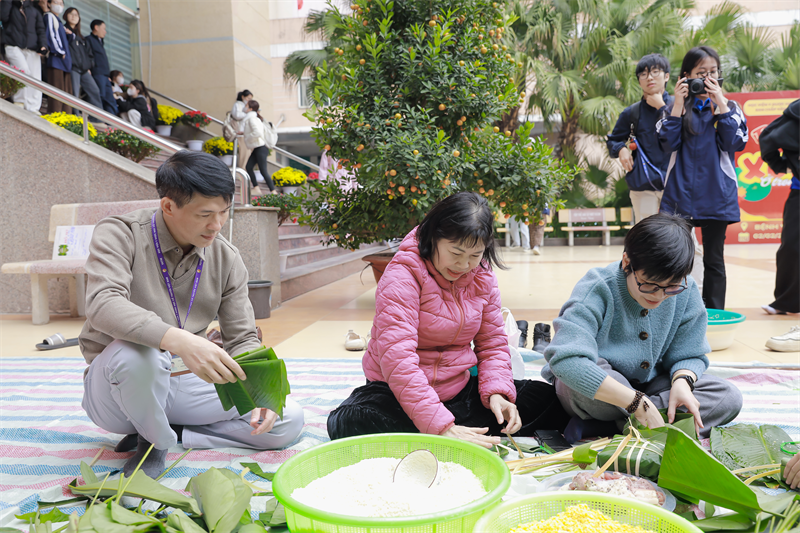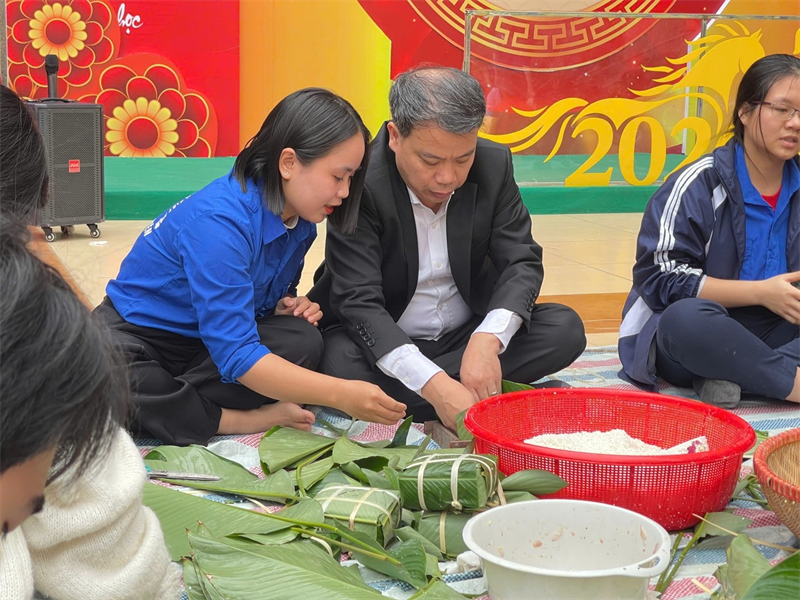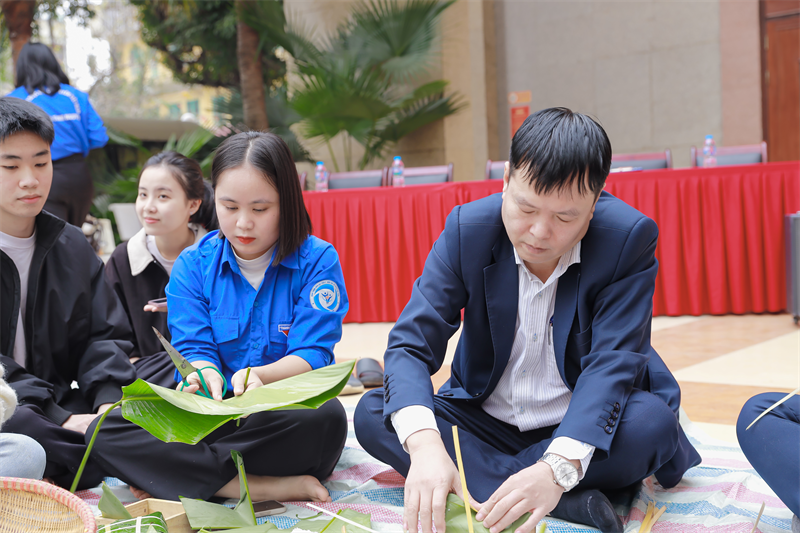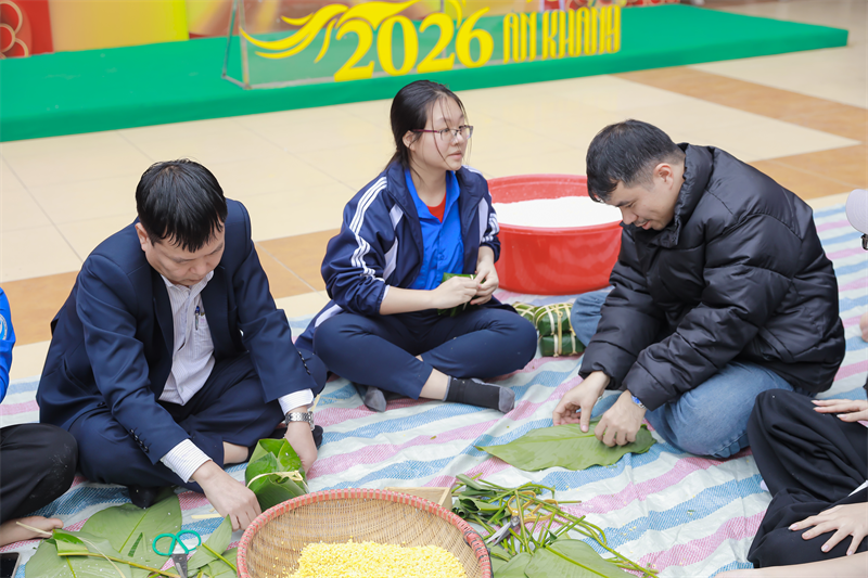 Các thầy, cô và sinh viên tham gia gói bánh chưng
