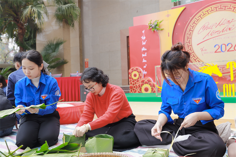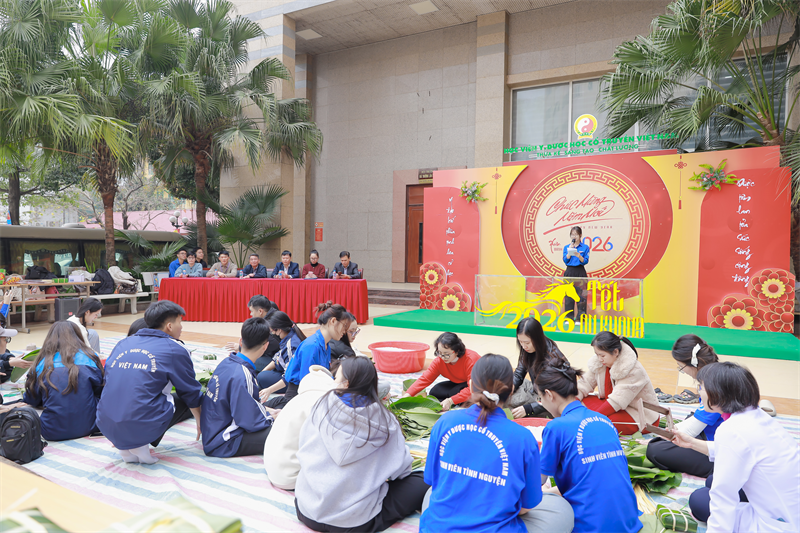 Chương trình có sự góp mặt, ủng hộ và tham gia của Ban lãnh đạo Học viện, các thầy, cô giáo, cán bộ phòng, ban và sinh viên đội tình nguyện. Trong khuôn viên của Học viện YDHCT Việt Nam, các thầy cô, các bạn sinh viên trẻ tuổi đầy nhiệt huyết chuẩn bị sẵn nếp, lá dong, thịt heo, đỗ xanh… cùng nhau ngồi gói 160 chiếc bánh chưng vuông vắn, các bạn thay phiên nhau đun lửa trắng đêm để nấu chín và kịp trao những chiếc bánh nóng hổi cho bệnh nhân đang điều trị tại Bệnh viện Tuệ Tĩnh như một món quà ấm áp nhân dịp Tết đến Xuân về.