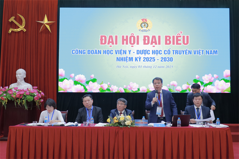 Đại hội đại biểu Công đoàn cơ sở Học viện Y - Dược học cổ truyền Việt Nam nhiệm kỳ 2025 – 2030 đã thành công tốt đẹp, biểu thị sức mạnh đoàn kết, ý chí và nguyện vọng của tuổi trẻ Học viện được cống hiến tài năng, sức trẻ, năng động sáng tạo góp phần xây dựng Học viện xứng danh là cơ sở đào tạo hàng đầu trong lĩnh vực y học cổ truyền.
