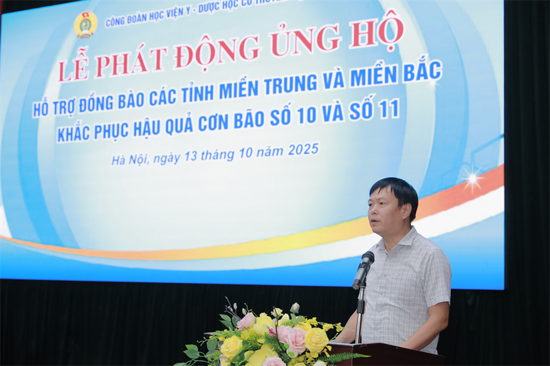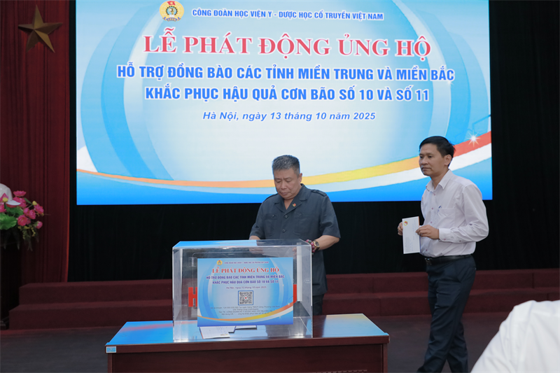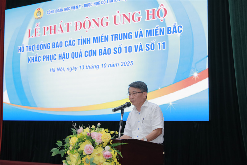 Tại buổi lễ ThS.BS Nguyễn Vinh Huy Chính – Chủ tịch Công đoàn Học viện chia sẻ: với tinh thần “tương thân, tương ái”, “lá lành đùm lá rách”, hưởng ứng lời kêu gọi của lãnh đạo Đảng, Nhà nước, Uỷ ban Trung ương Mặt trận Tổ quốc Việt Nam, Công đoàn Y tế Việt Nam, Học viện Y-Dược học cổ truyền Việt Nam cũng mong muốn đóng góp một phần nhỏ bé của mình để giúp các địa phương chịu ảnh hưởng bởi cơn bão số 10 và 11 nhanh chóng khắc phục hậu quả, khôi phục sản xuất, giúp người dân sớm ổn định cuộc sống sau thiên tai. Hưởng ứng lời kêu gọi đó, Đảng ủy, ban Giám đốc, ban Chấp hành công đoàn, tập thể cán bộ viên chức, người lao động toàn Học viện đồng lòng chia sẻ hướng về đồng bào vùng bão lũ với tinh thần “lá lành đùm lá rách”. Ngày đầu tiên tổng số tiền ủng hộ đồng bào bị thiệt hại do bão lũ gần 55 triệu đồng. Đây là tình cảm của tập thể cán bộ viên chức, người lao động của toàn Học viện mong muốn sẻ chia một phần những khó khăn, vất vả của người dân vùng lũ, giúp đồng bào nơi bão lũ tái cân bằng cuộc sống khi thiên tai qua đi.
