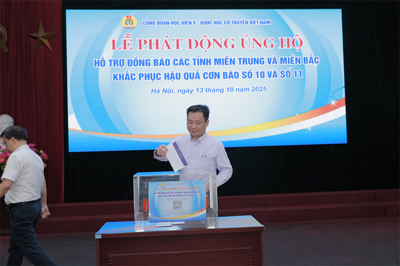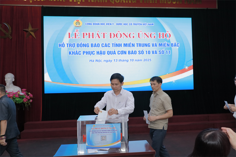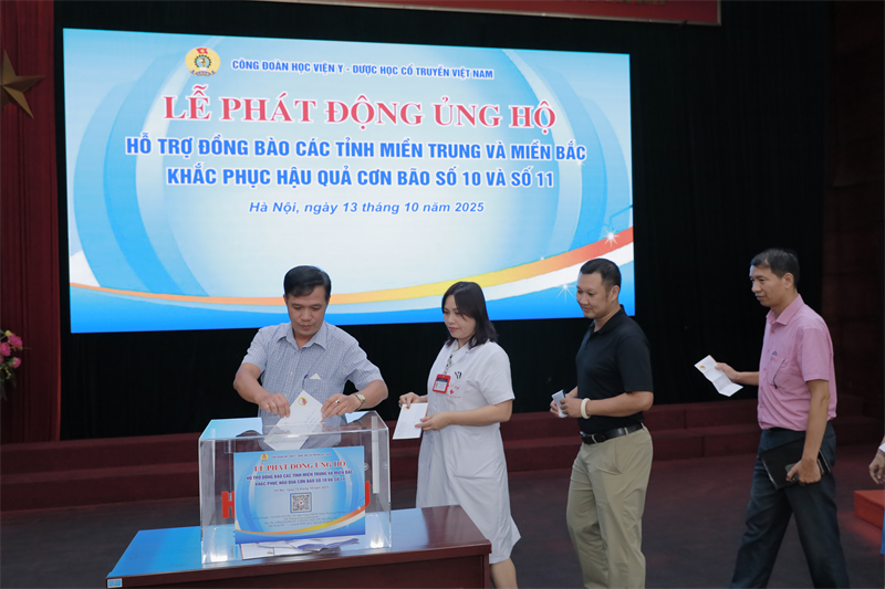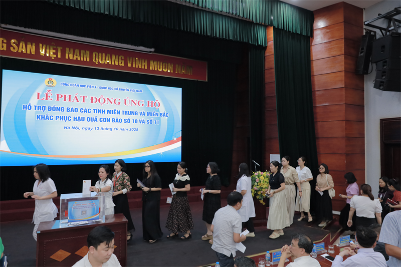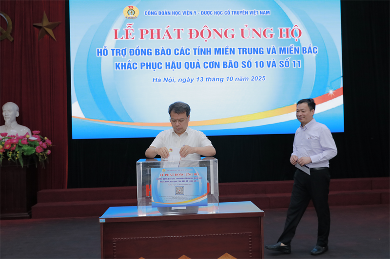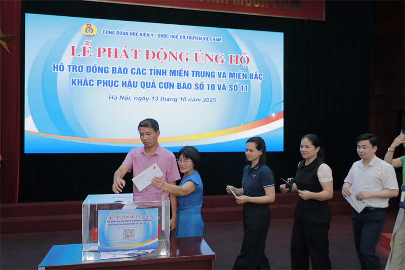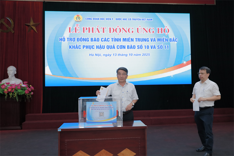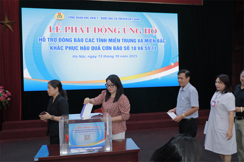 Chiều ngày 13/10 tại Hội trường Hải Thượng Lãn Ông, Học viện Y - Dược học cổ truyền Việt Nam đã tổ chức lễ phát động ủng hộ đồng bào các tỉnh miền Bắc và miền Trung khắc phục hậu quả của cơn bão số 10 và số 11.